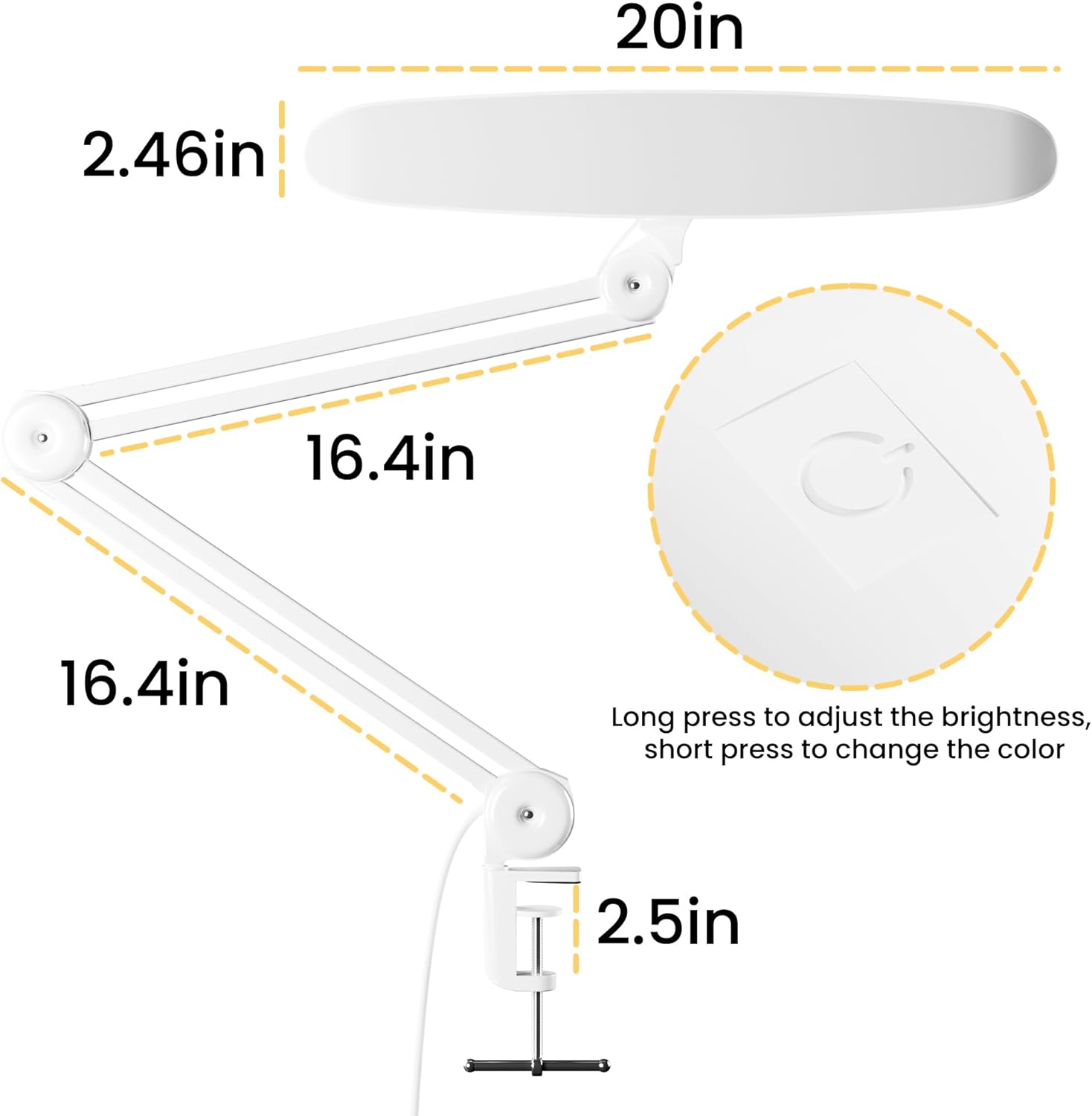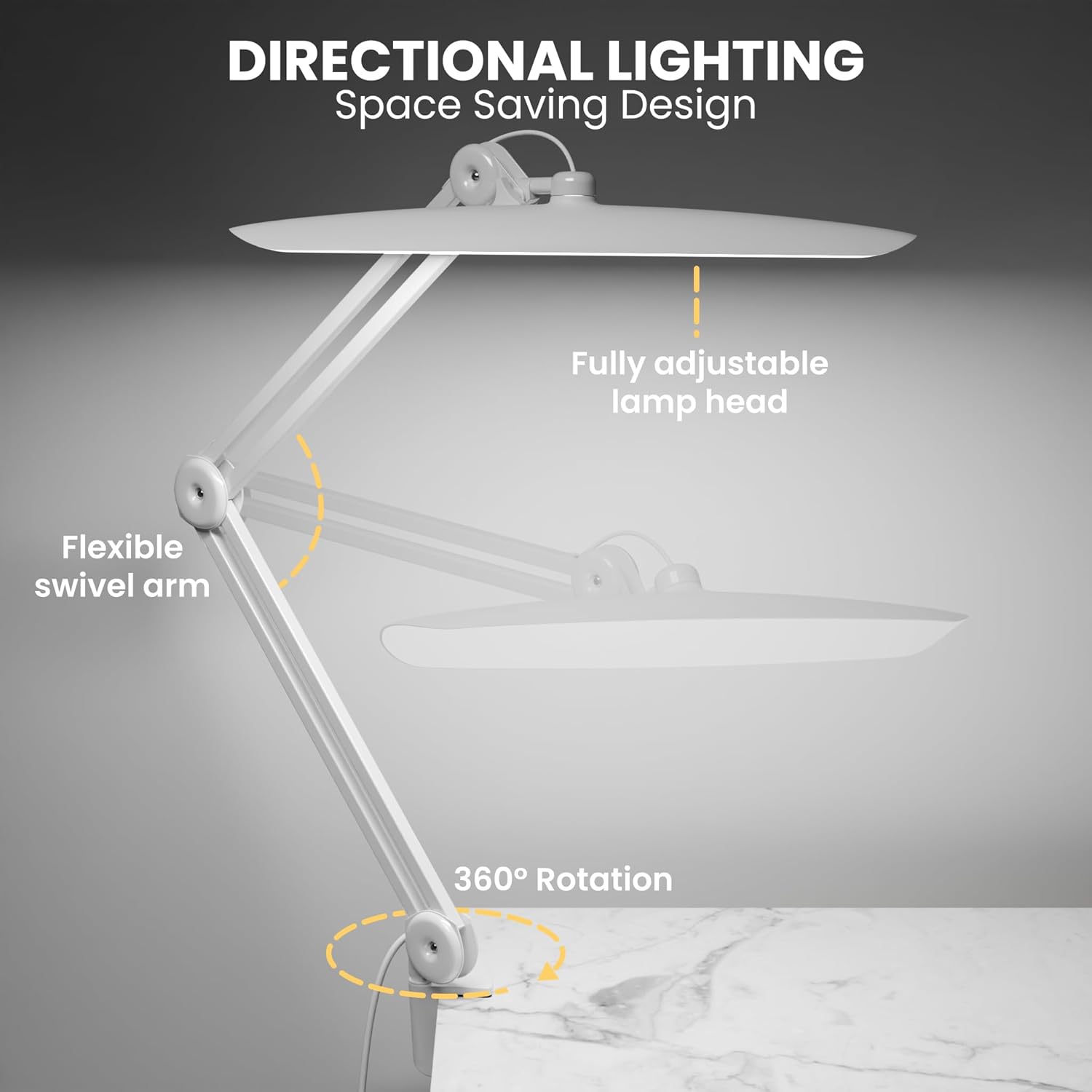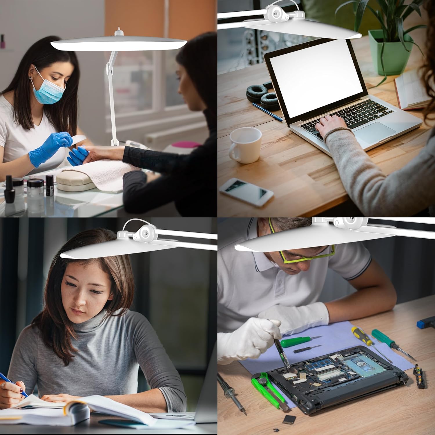 3000 Lumens Adjustable LED Desk Lamp & Task Lamp - Bright, Dimmable Lighting for Office, Crafts, Nails &Salon Hobbies with Clamp (CCT, White)