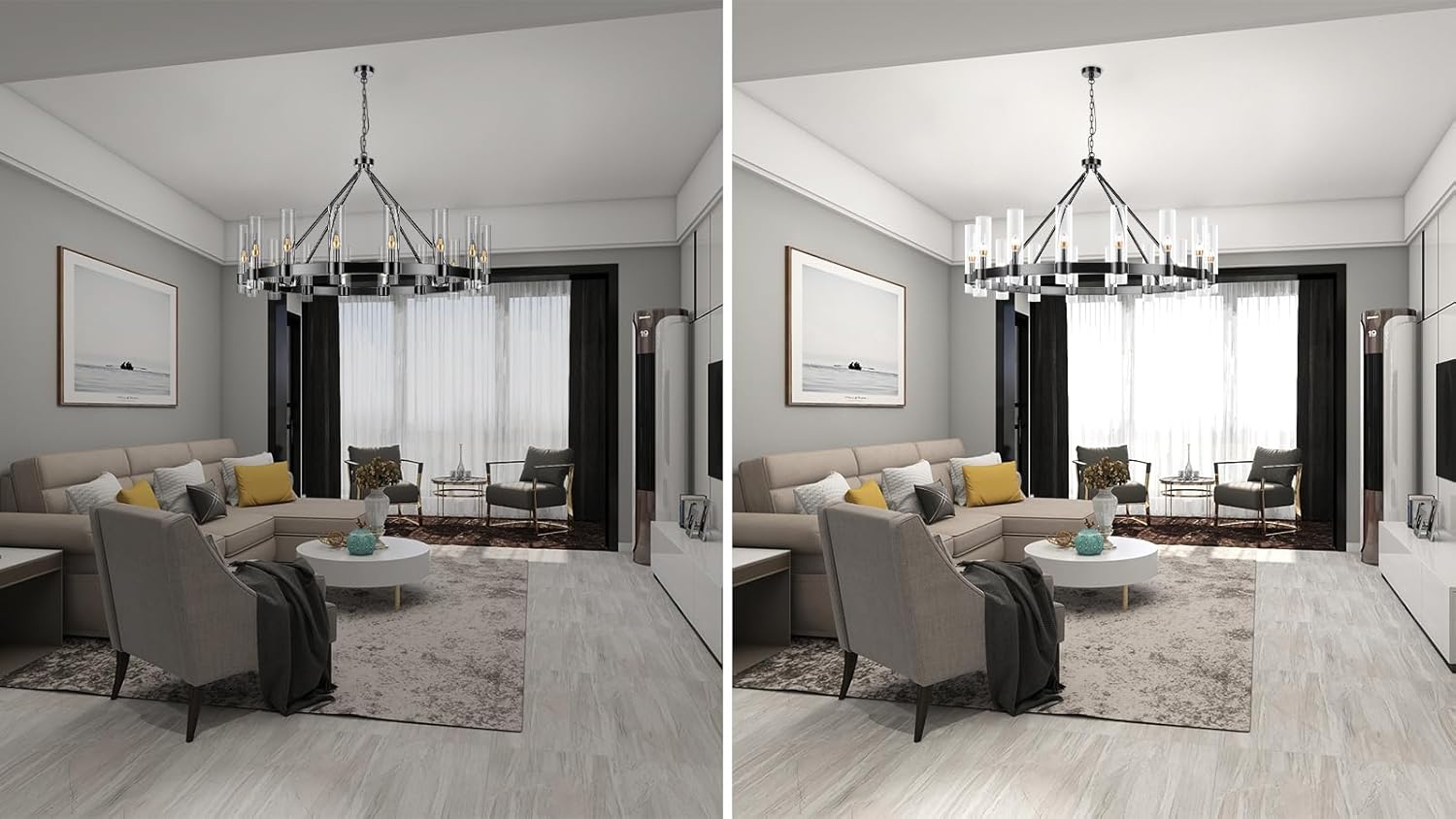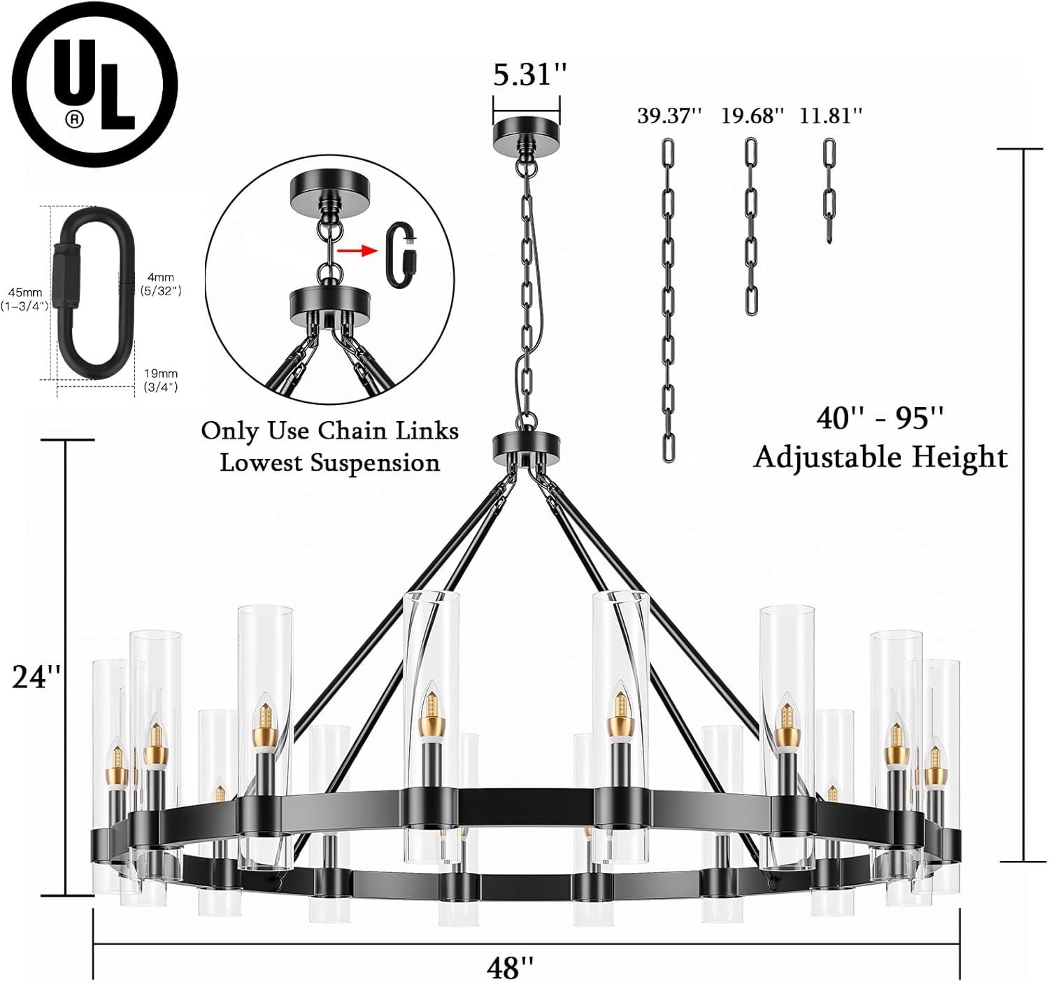 - Our chandelier are equipped with 3 hanging chains, total length: 70.9 inches, you can freely combine and adjust the hanging height to meet your requirements.
