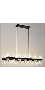 AEULYTIR 54 Inch Black Chandelier Linear with Clear Glass Shade, 16-Lights Mo...