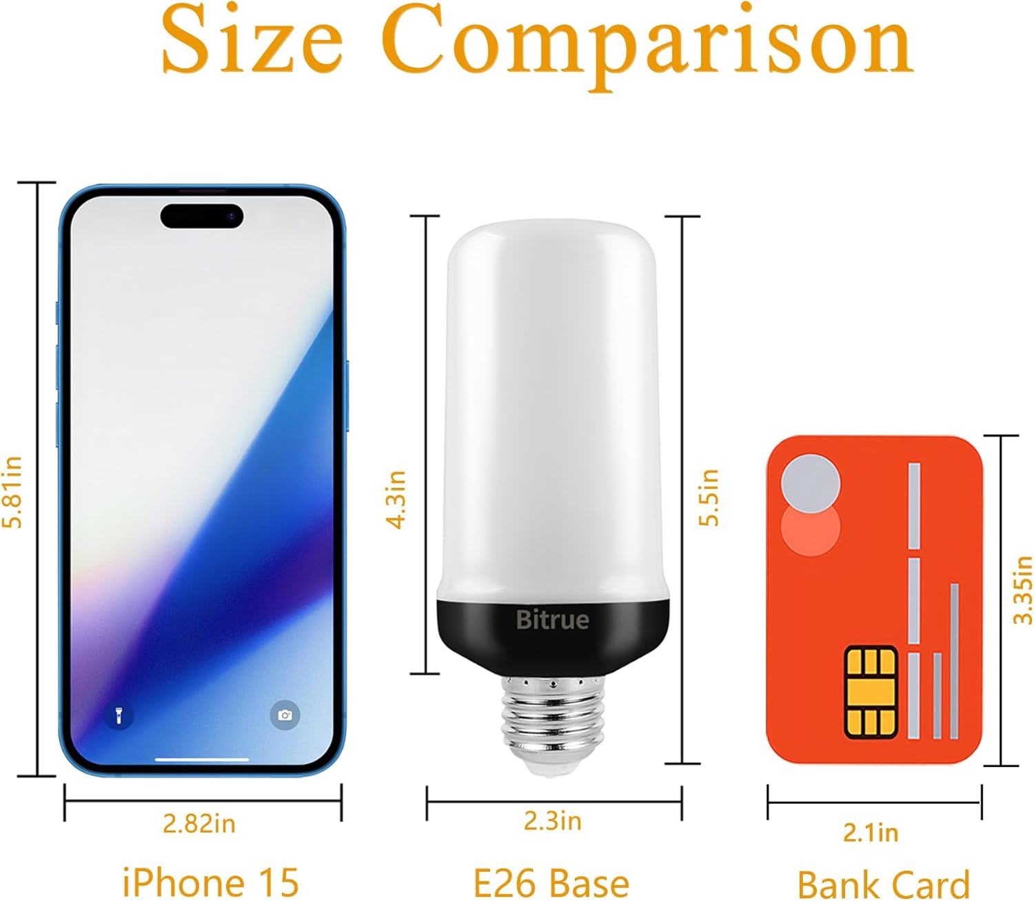 Bitrue LED Flame Effect Light Bulb, 4 Modes Flame Light Bulbs, E26 Base Fire Light Bulb with Gravity Sensor,Flickering Light Bulbs Halloween Home Party(4 Pack)