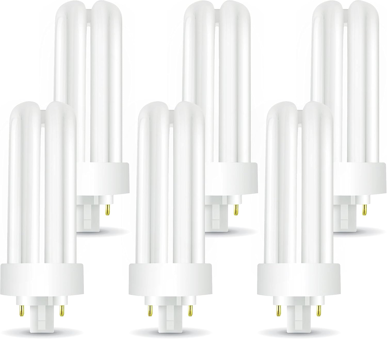 Shipped as a set, you'll have spares available without another trip online or to the hardware store. Model number: PLT-26W 841 26, rated wattage GX24q-3: multi pin connecting base: it's a triple-tube bulb 24. Spacing between the pins is 24mm Q: This base is a quad pin with 4 pins CW: Cool white color 4100K Kelvin Temperature - the color of the light 1800 Lumens - brightness of the light. Tip: You need to match the shape/size, wattage and voltage of a bulb. Color can always be chosen by what you like. More details: Manufacturer: Circle Lighting. Pack of 10 bulbs CFL: uses less electricity than incandescent bulbs. Average Rated Life per bulb 12,000 Max overall length: 6". (W) 1.88 (H) 5.15 (L) 1.88 120-volt fixtures, Plug-In Light Bulbs. Replacements for: Sylvania CF26DT/E/IN/841. GE F26TBX/SPX41/A/4P. Philips 268250 PL-T 26W/41/4P/ALTO and more. Where is this tubular bulb usually found? Typical in the kitchen to brighten up a large area. Used in Fire stations and places with high ceilings. Used in mechanical shops for a powerful light in an open area.