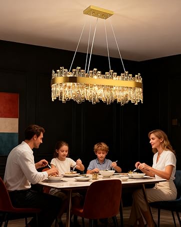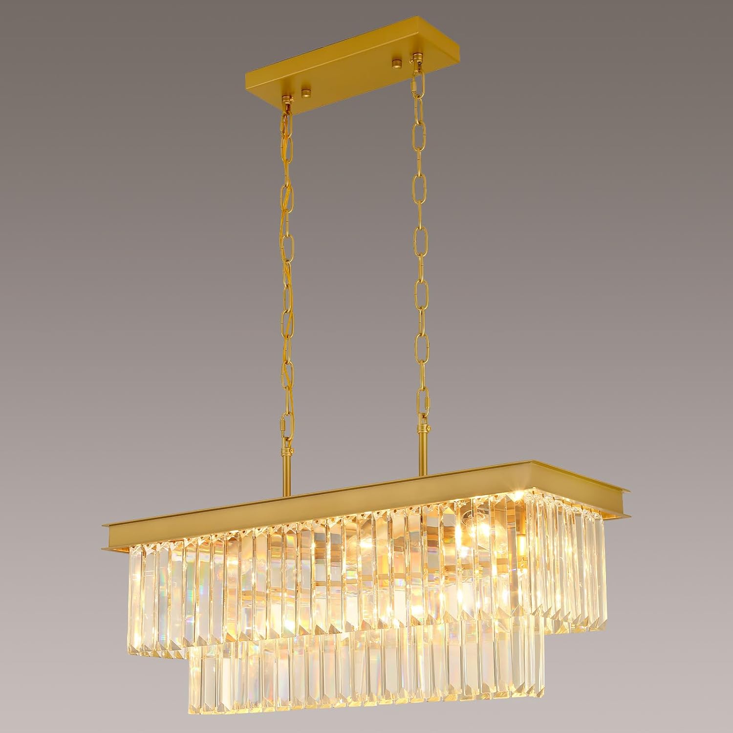 - 11 Lights Rectangular Crystal Dining Room Chandelier, suitable for use in a variety of scenarios for dining room, kitchen island, etc.