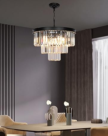 - 3-Tier Modern black Crystal Chandeliers Contemporary Ceiling Lights Fixtures