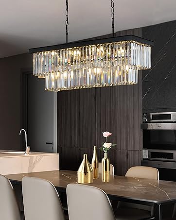 - Crystal Chandeliers for Dining Room 11-Light Black Modern Chandelier Rectangle Chandeliers for Kitchen Island
