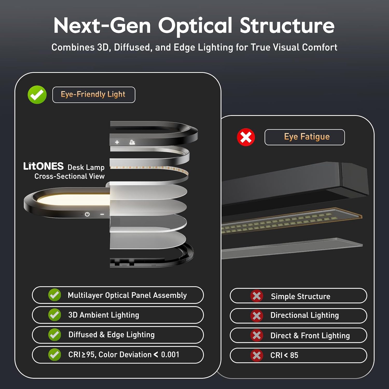 LED Desk Lamp for Home Office – Eye-Caring Double Side Light with Knob Remote, Stepless Dimming & Color, Memory, Metal Table Lamp for Zoom, Studying, Video Conference, Flicker-Free, Glare-Free